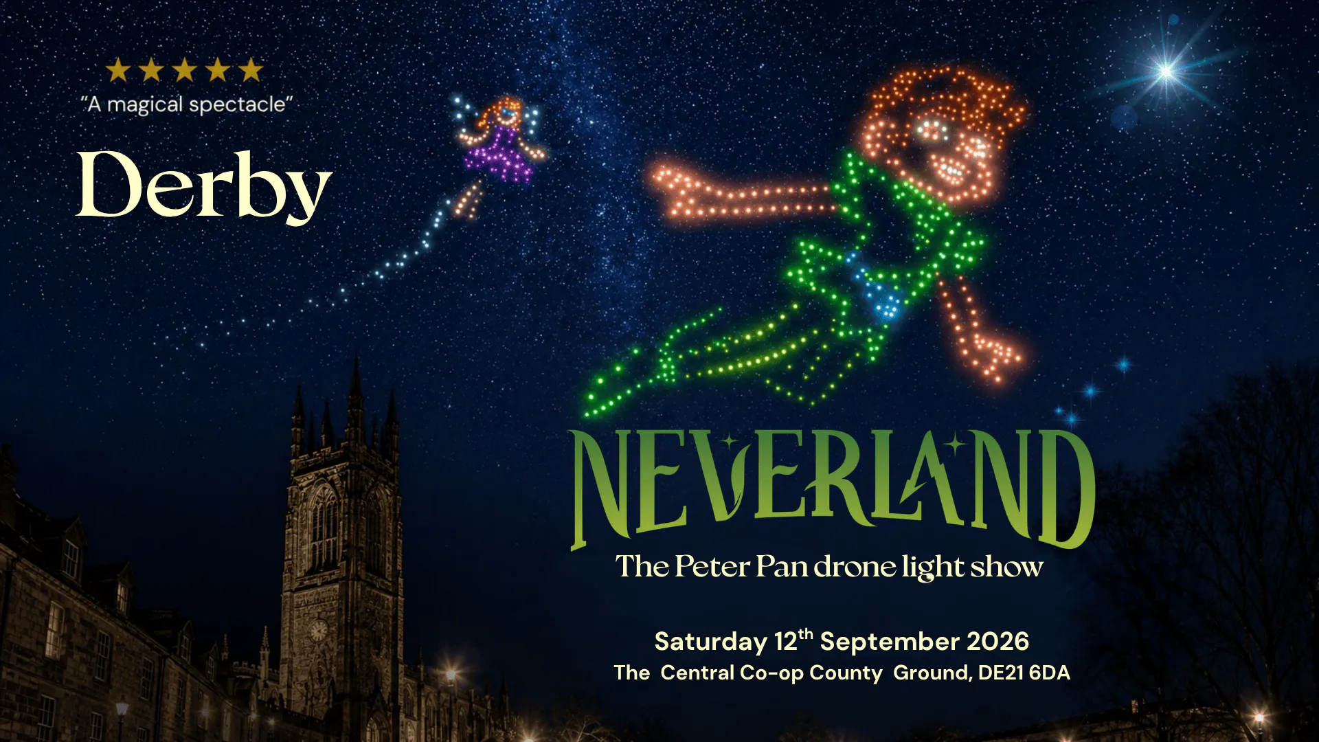 Experience the timeless magic of Peter Pan like never before! J.M. Barrie’s beloved tale comes to life in the world’s first-ever Peter Pan Drone Light Show.